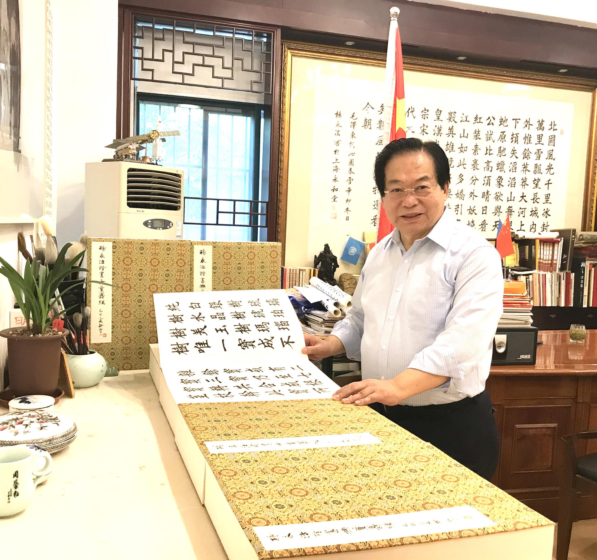 杨永法现为中国书法家协会会员,上海市政协书画院特聘画师,上海航天书法家协会主席,上海永法文化创意产业发展基金会副理事长兼秘书长。他修文养德,深耕书艺六十载,所书楷书端庄大气,刚健有力,笔笔精到,自家风格明显,深受赞誉。