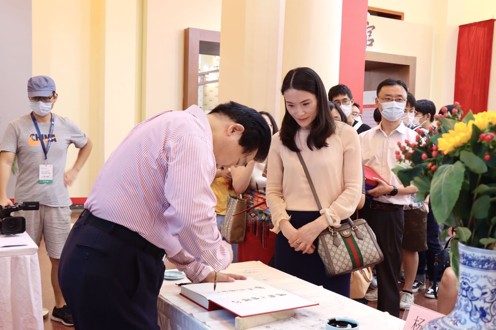 下午15:30分,新书签售会正式开始,现场火爆异常,不少粉丝排队等候签名合影,记者发现,在排队等候签售的人群中,不乏众多年轻的身影,粉丝小唐告诉记者,虽然年纪不大,但自己是书法迷,特别佩服这种几十年功力的书法家,向他们学习。