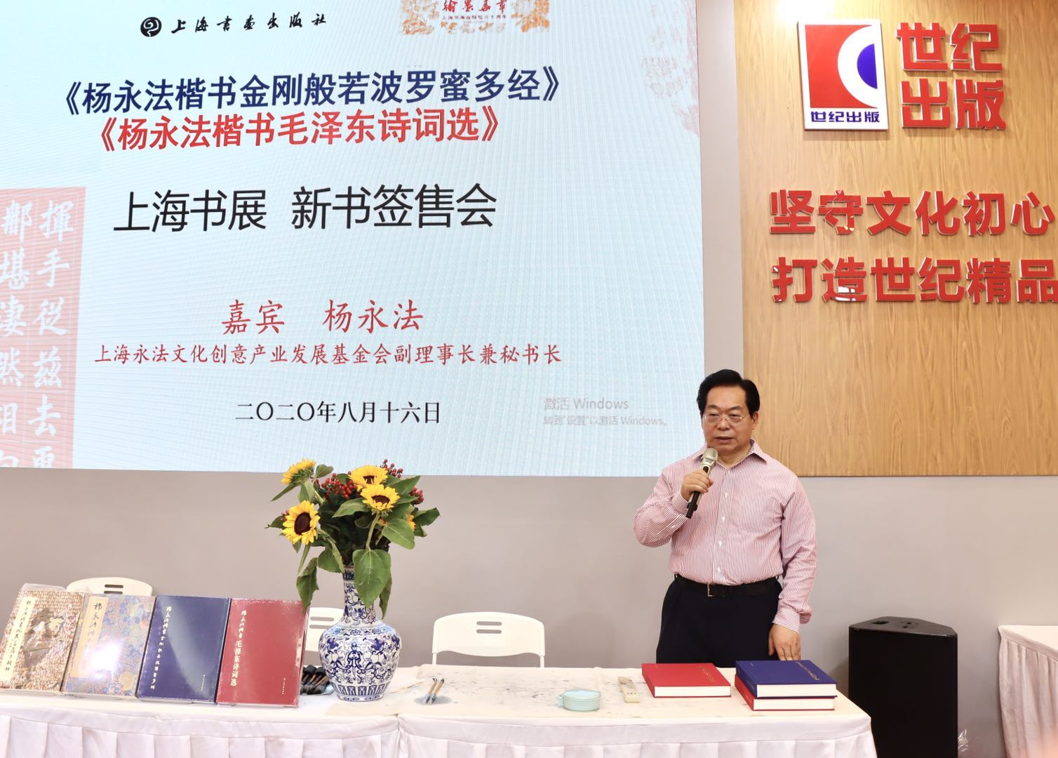 日前,2020上海书展暨“书香中国”上海周在上海展览中心举办,书法名家、上海永法文创产业发展基金会副理事长兼秘书长杨永法携新书《杨永法楷书金刚般若波罗蜜多经》、《杨永法楷书毛泽东诗词选》亮相上海书展,通过网络直播、签售等方式与读者进行交流,号召大家热爱中华优秀传统文化,签售现场人气爆棚。